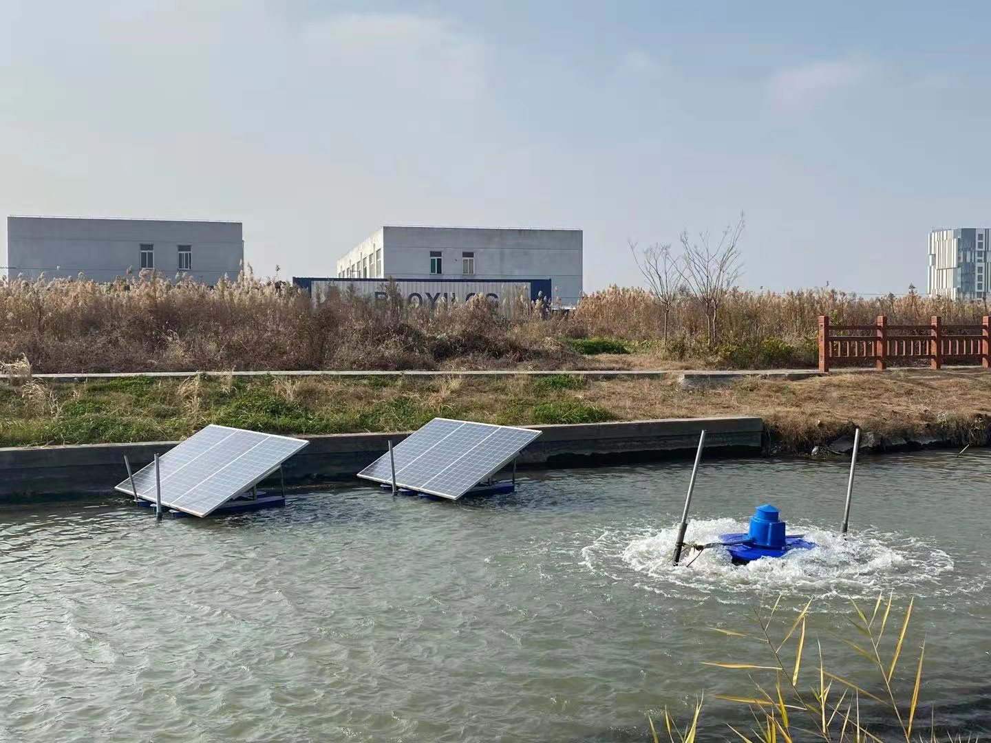 上海嘉定區(qū)5臺太陽能涌浪安裝現場--綠博斯增氧機